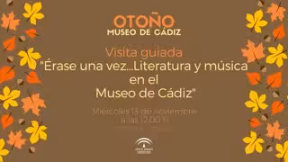 El Museo de Cádiz, dependiente de la delegación territorial de Cultura y Patrimonio Histórico de la Junta de Andalucía, continúa con su programación prevista en la campaña 'Otoño en el Museo de Cádiz'. Dentro del ciclo dedicado a la literatura y la música el próximo miércoles, 13 de noviembre, a las 12,00 horas, está prevista una visita guiada a través de las colecciones de la institución cultural gaditana.