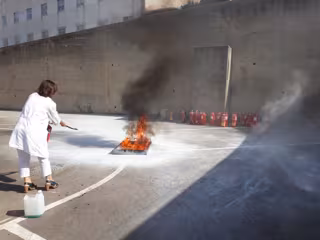 Tras la teoría, los profesionales se han dirigido a una zona exterior y han tenido la oportunidad de apagar un incendio controlado con los equipos de extinción disponibles. Para el fuego se ha utilizado gasoil junto con gasolina, y el tipo de extintor empleado ha sido de polvo polivalente tipo ABC. Además de la responsable de Prevención de Riesgos Laborales y del ingeniero técnico del Área, ha estado presente personal cualificado de la empresa suministradora de los extintores.