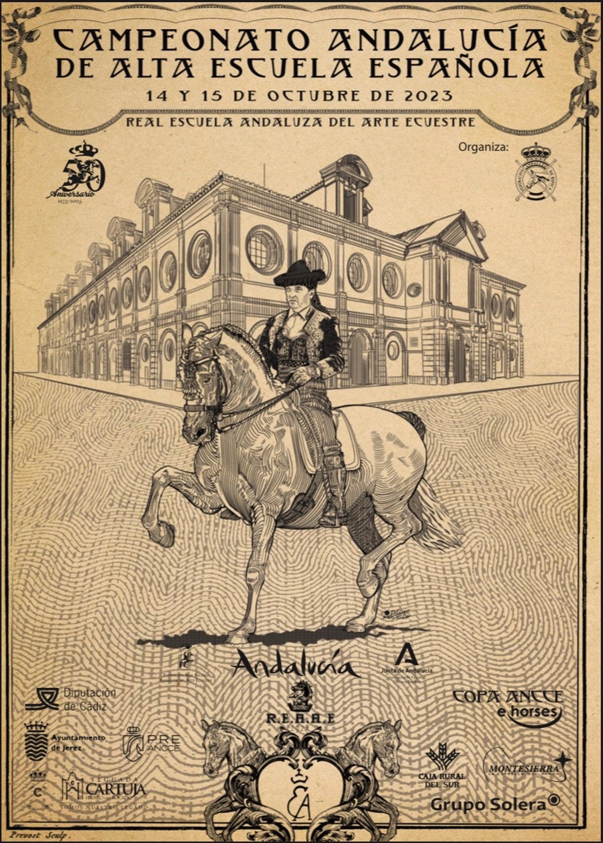 La Real Escuela Andaluza del Arte Ecuestre, fundación dependiente de la Consejería de Turismo, Cultura y Deporte de la Junta de Andalucía, acogerá los días 14 y 15 de octubre el Campeonato de Andalucía de Alta Escuela Española, puntuable para el Campeonato del Mundo de Pura Raza Española Sicab 2023.