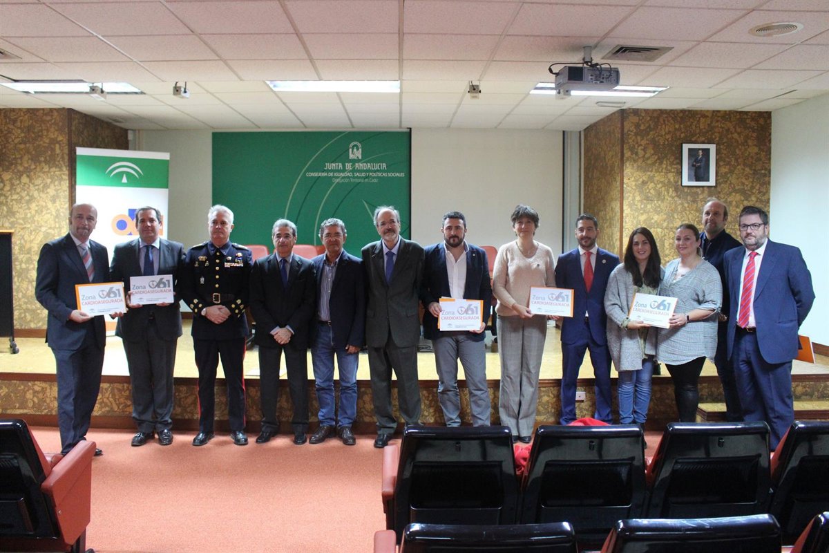 Por su parte, el delegado territorial de Igualdad, Salud y Políticas Sociales de la Junta en Cádiz, Manuel Herrera Sánchez, ha hecho entrega a los representantes de estas instituciones del distintivo de zona cardioasegurada, acompañado del director del servicio de emergencias sanitarias 061 en la provincia, Jesús Enrique Martínez Faure.