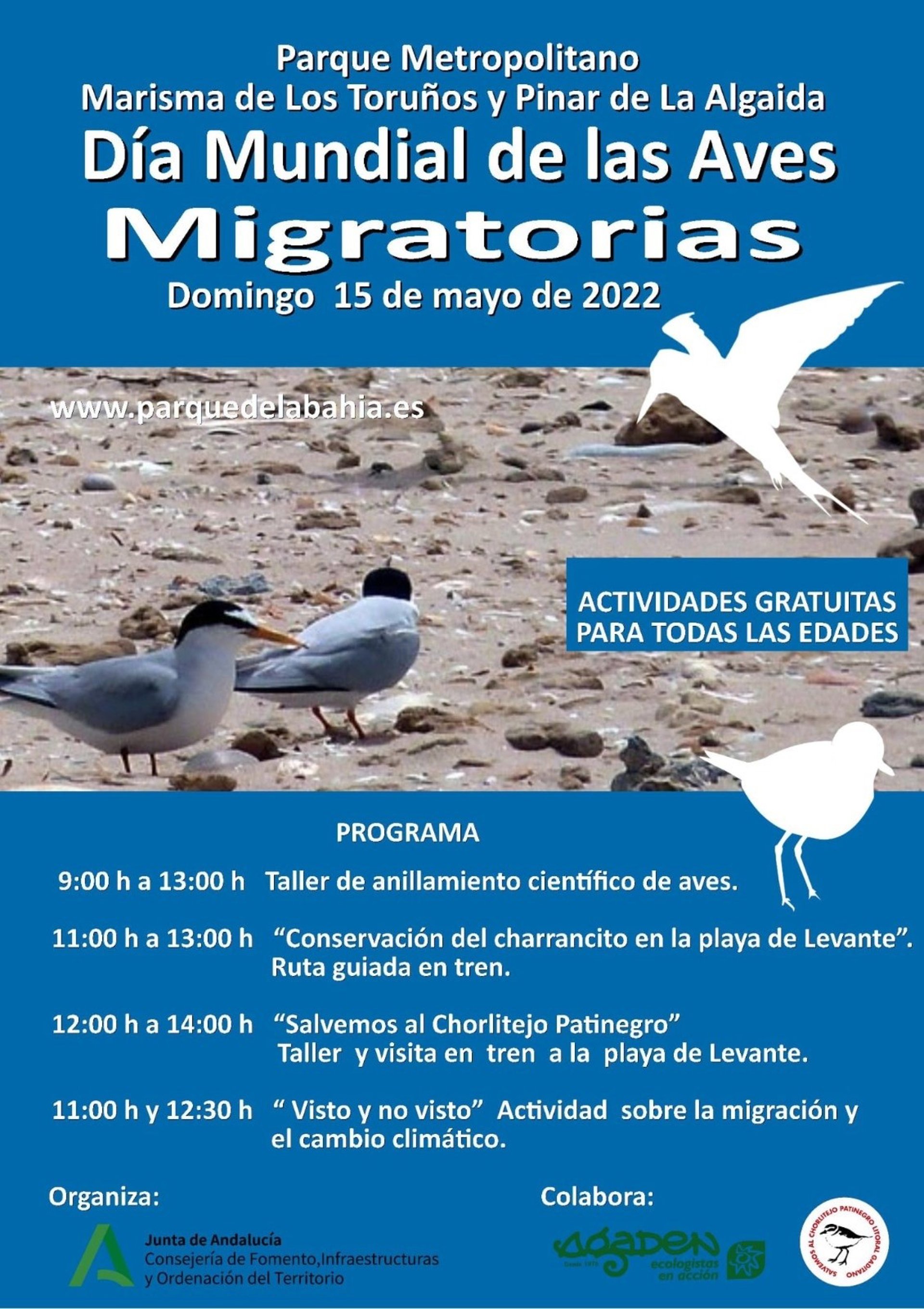 El Parque Metropolitano Marisma de los Toruños y Pinar de la Algaida (Cádiz) se sumará el próximo domingo, 15 de mayo, a las conmemoraciones del Día Mundial de las Aves Migratorias con diferentes actividades que se centrarán en la realización de rutas guiadas y talleres. La jornada tratará de concienciar a los usuarios sobre la importancia de proteger a especies emblemáticas que, como el charrancito y el chorlitejo, frecuentan el litoral del parque en los períodos de reproducción.