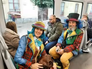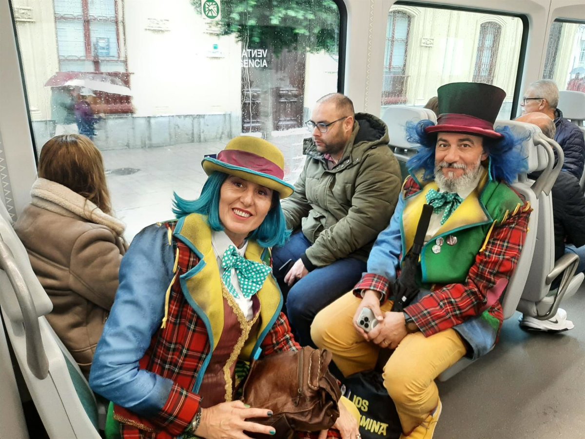 Usuarios vestidos de carnaval en el trambahía. - JUNTA DE ANDALUCÍA