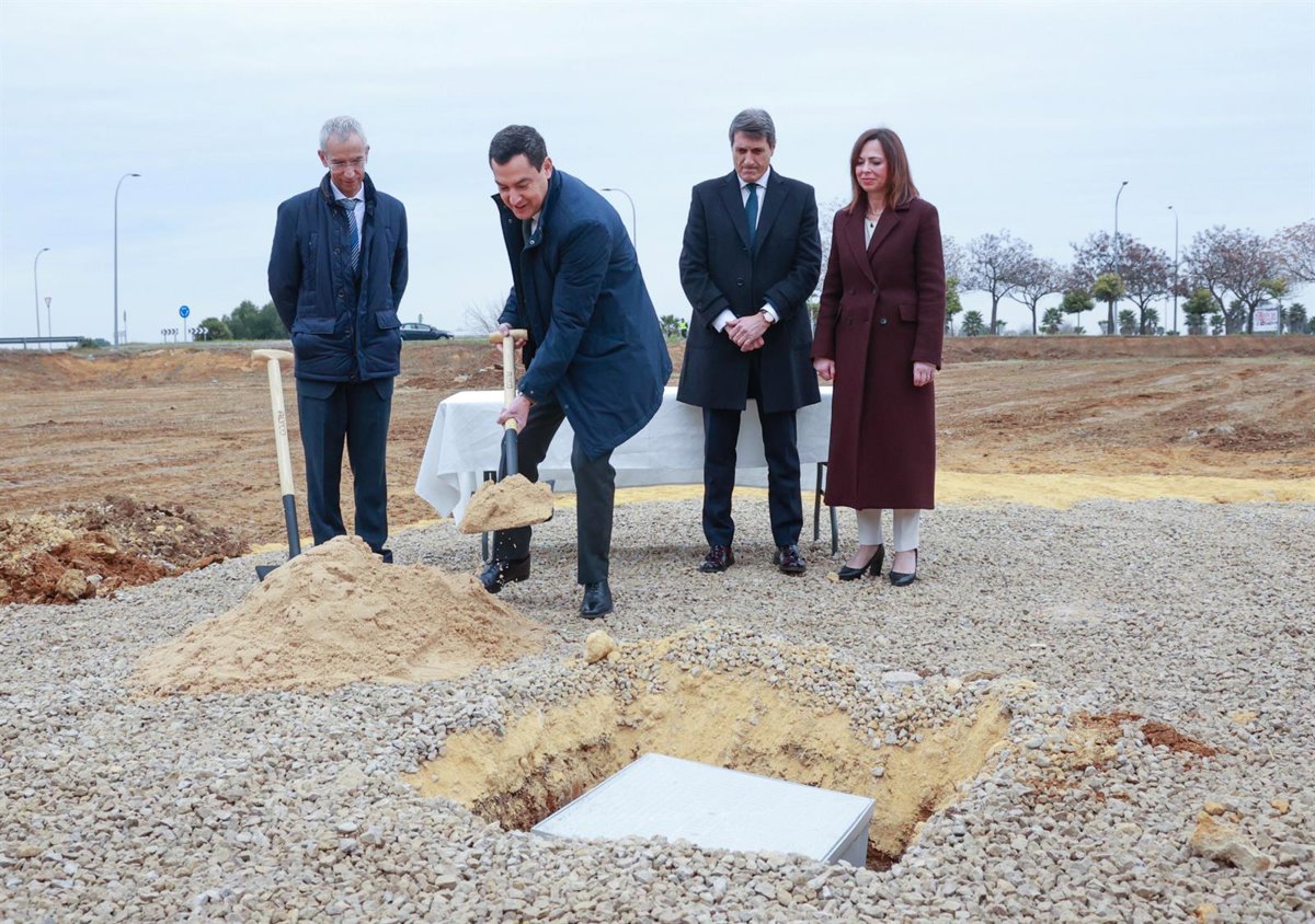 Archivo - El presidente de la Junta de Andalucía, Juanma Moreno, coloca la primera piedra de una promoción de viviendas en Utrera (Sevilla) en una imagen de archivo - Rocío Ruz - Europa Press - Archivo