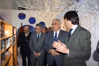 Ramírez de Arellano, acompañado por el presidente de la compañía, Francisco Jiménez, y su consejero delegado, Rafael Jiménez, ha visitado la sede central de la compañía en Puente Genil, donde ha recorrido el departamento de diseño, cuyas creaciones han iluminado incluso la Navidad en Nueva York, así como la planta de fabricación y las instalaciones de I+D.