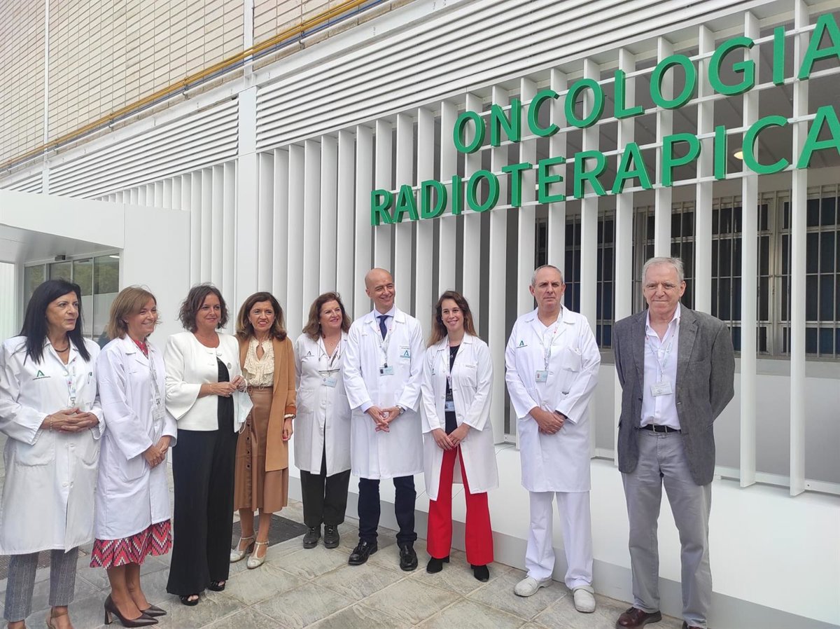 La consejera de Salud (3 izda.), ante el Servicio de Oncología Radioterápica del Hospital Universitario Reina Sofía de Córdoba. - EUROPA PRESS