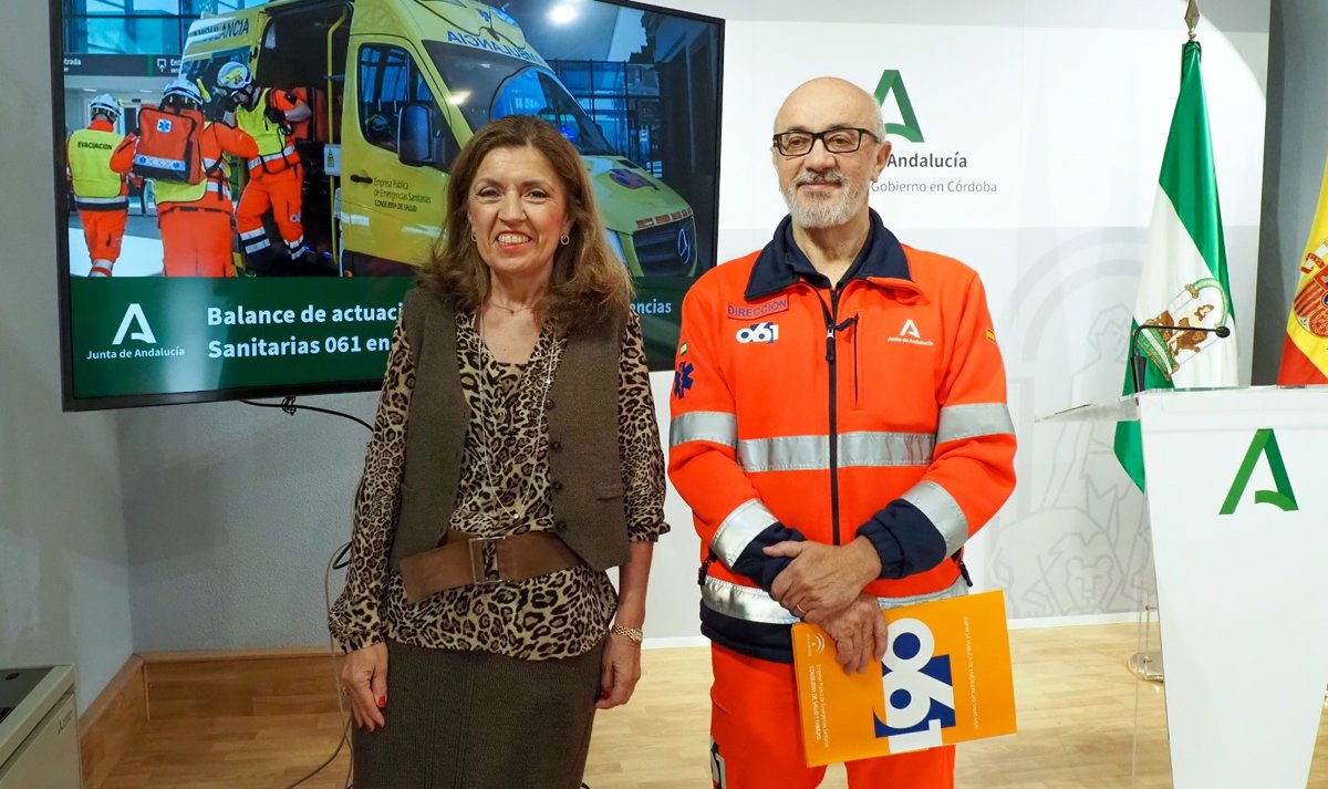 La delegada de Salud y Consumo de la Junta de Andalucía en Córdoba, María Jesús Botella, junto al director del 061 en Córdoba, Antonio Mantero, ha realizado un balance sobre la actividad del Teléfono de Emergencias Sanitarias 061 el pasado año en la provincia, detallando que los cordobeses realizaron más de 265.000 llamadas al centro coordinador del 061.