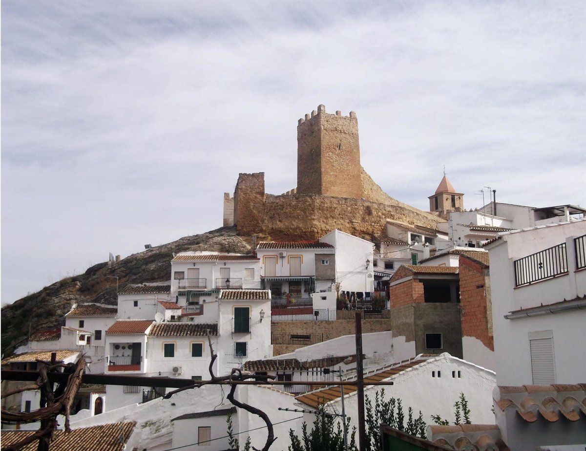 La fortaleza, de origen medieval, presenta una compleja evolución constructiva y un trazado triangular con diversas torres de flanqueo. La Torre del Homenaje, cuerpo de altura con fábrica original atribuida al siglo X y modificaciones posteriores nazaríes, constituye su elemento más emblemático.