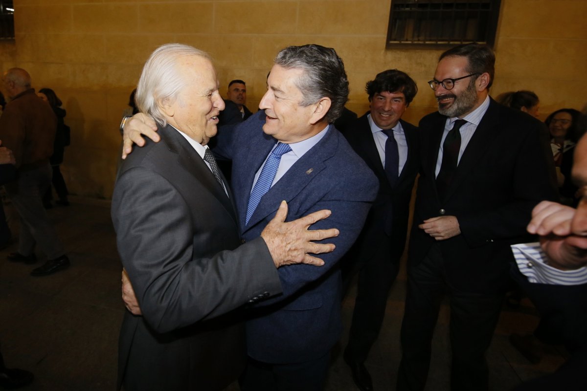 Archivo - El consejero de la Presidencia, Interior, Diálogo Social y Simplificación Administrativa, Antonio Sanz, abraza al extorero Manuel Benítez 'El Cordobés' antes de la gala de presentación de la Feria Taurina de Córdoba 2024. - Madero Cubero - Europa Press - Archivo