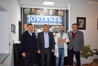 El delegado de Agricultura, Pesca y Desarrollo Rural de la Junta en Córdoba, Francisco Zurera, acompañado del alcalde de Iznájar, Lope Ruiz, ha visitado en dicho municipio las instalaciones de la empresa 'Los Jovianes', dedicada principalmente a la pastelería, destacando Zurera que su mejora continua ha sido la clave para su crecimiento sostenible.