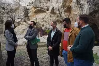 El delegado de Empleo, Formación, Trabajo Autónomo, Transformación Económica, Industria, Conocimiento y Universidades de la Junta en Córdoba, Ángel Herrador (segundo por la izda.), en su visita a Monturque. - JUNTA DE ANDALUCÍA