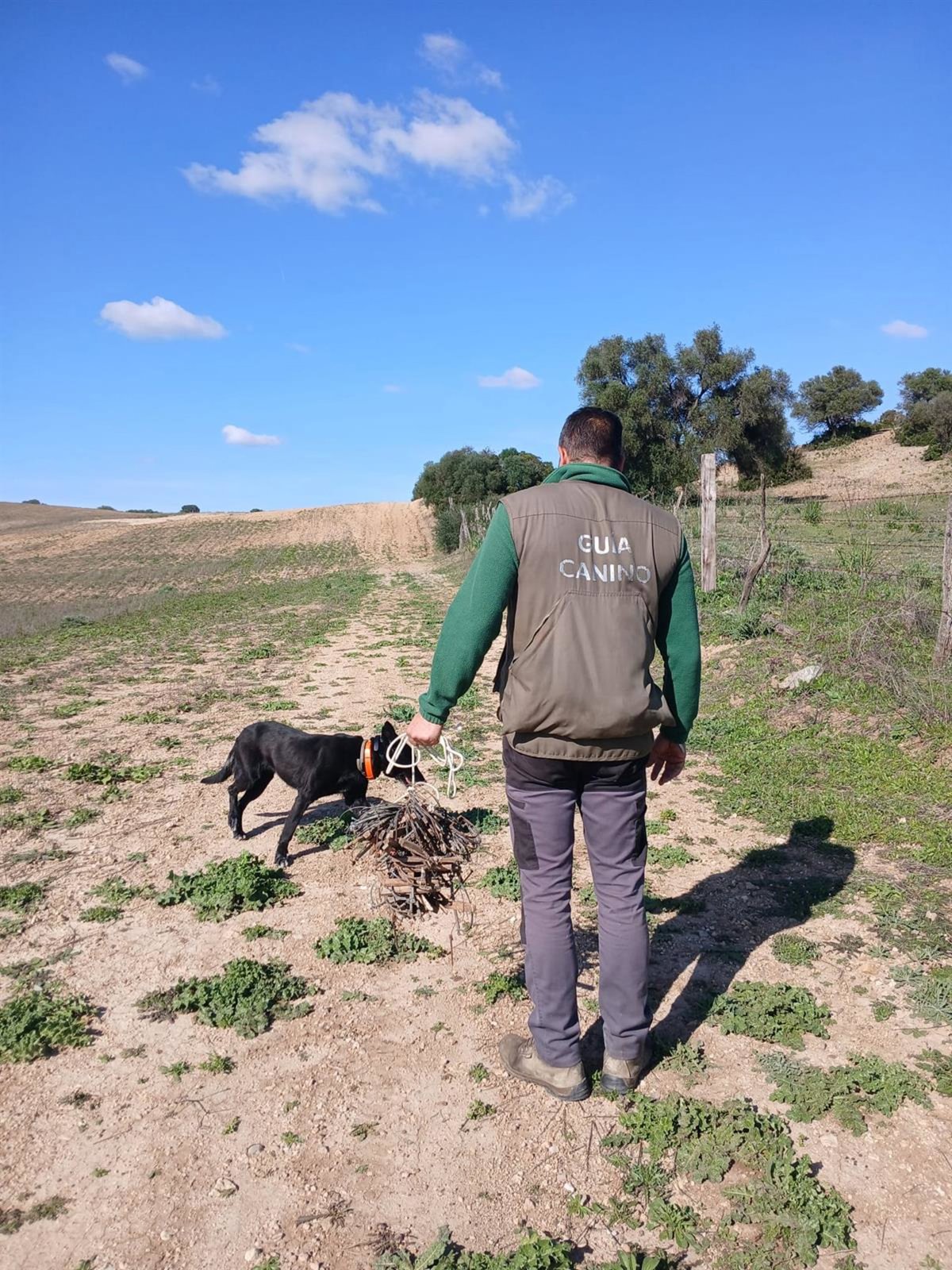Un guía canino con un perro adiestrado para localizar cebos y cadáveres envenenados, en el marco de la Estrategia Andaluza contra el Veneno. - JUNTA DE ANDALUCÍA