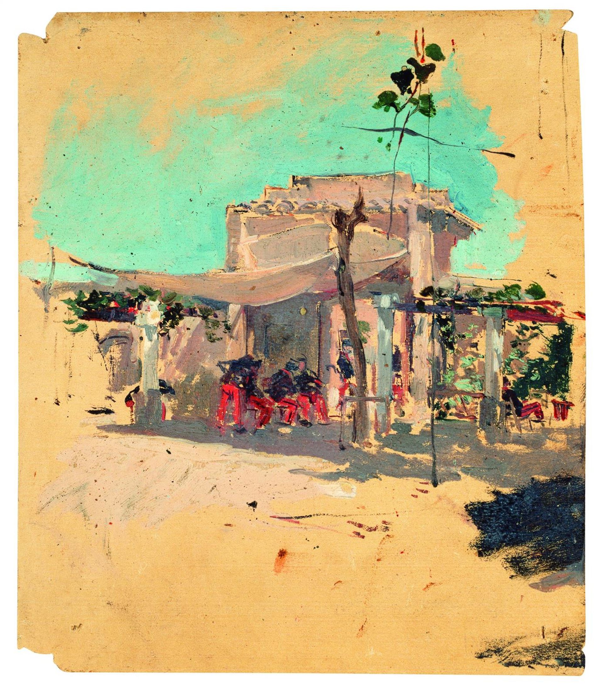 Hacia 1890, las costumbres y el lugar fueron objeto de la atención del pintor Joaquín Sorolla, como demuestra este boceto en el que se representa a un grupo de soldados de permiso que se distraían sentados en un mesón aledaño a la famosa fuente.
