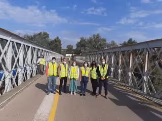 Archivo - La delegada territorial de Fomento, Infraestructuras y Ordenación del Territorio, Cristina Casanueva (tercera por la dcha.), en el Puente de Hierro de Palma del Río el pasado abril. - JUNTA DE ANDALUCÍA - Archivo