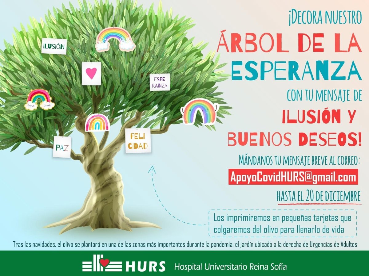 El Hospital Reina Sofía de Córdoba instalará el próximo día 22 de diciembre en el vestíbulo principal del Hospital General su 'Árbol de la Esperanza', un olivo que se adornará esta Navidad con "buenos deseos" que la sociedad cordobesa puede enviar desde este lunes día 7.