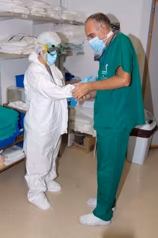 Un doctor del Hospital Reina Sofía ayuda a la colocación de un EPI - JUNTA DE ANDALUCÍA