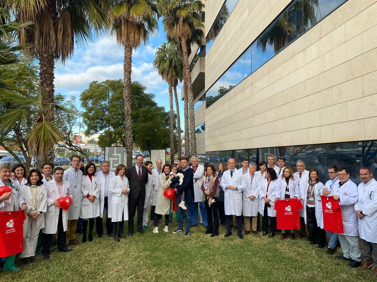 Autoridades, sanitarios y la familia de Sara en el Hospital Reina Sofía.