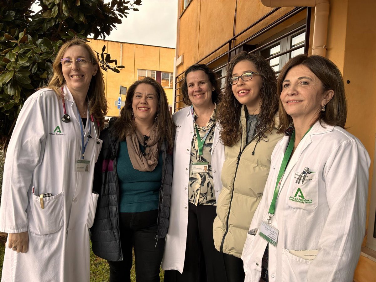 Yolanda y Sofía, madre e hija, donante y receptora, posan con sus médicas responsables. - JUNTA DE ANDALUCÍA