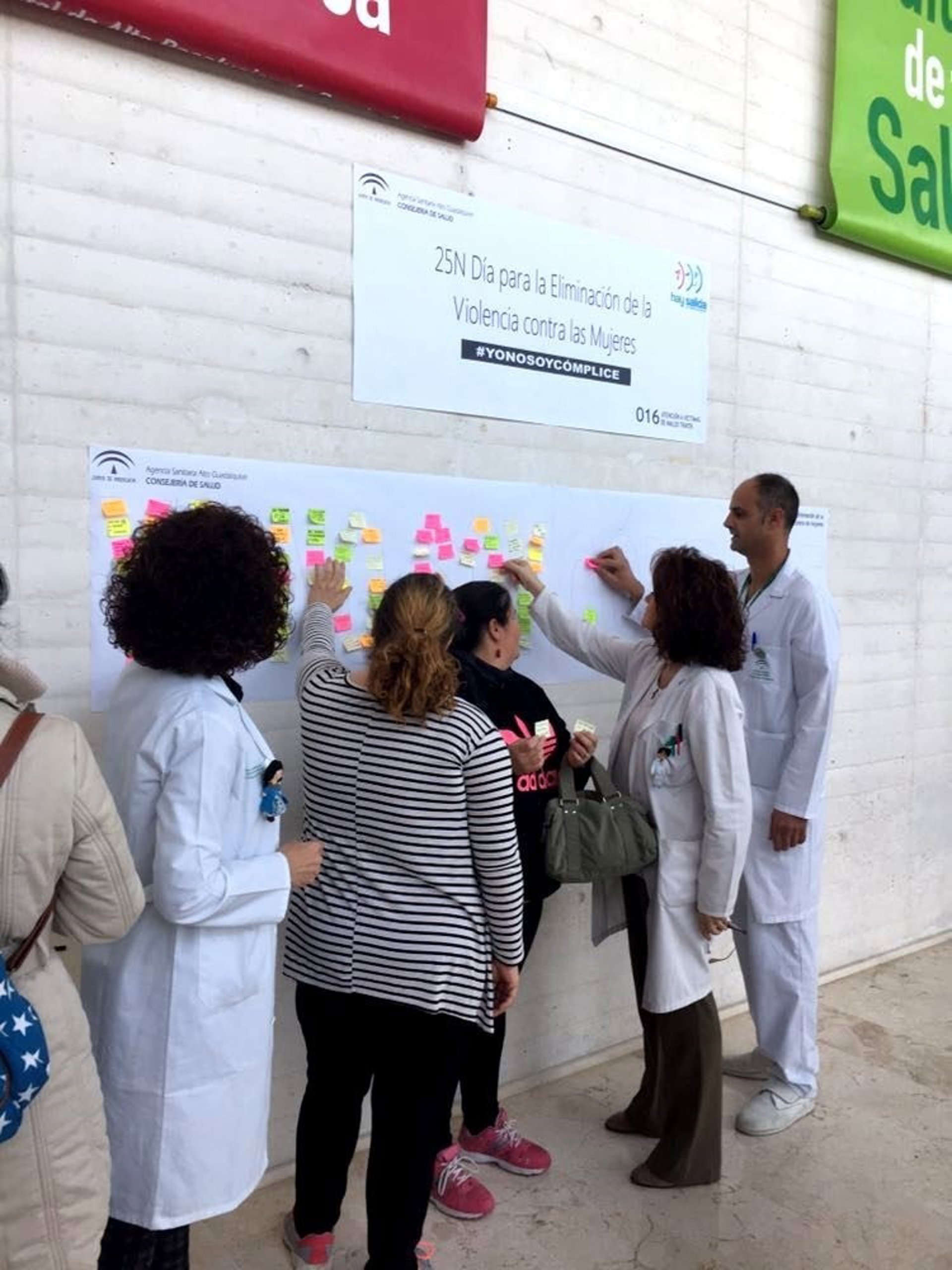 Por otro lado, se ha colocado murales con papel continuo en los que se invita a pacientes y profesionales a dejar, en 'post-it' de colores, sus mensajes de repulsa e implicación ante las diferentes violencias de género, haciendo especial hincapié en aquellas que no son tan evidentes como los golpes, de manera que los la disposición de los post-it forme las letras del lema de la campaña 2017, 'Yo no soy cómplice'.