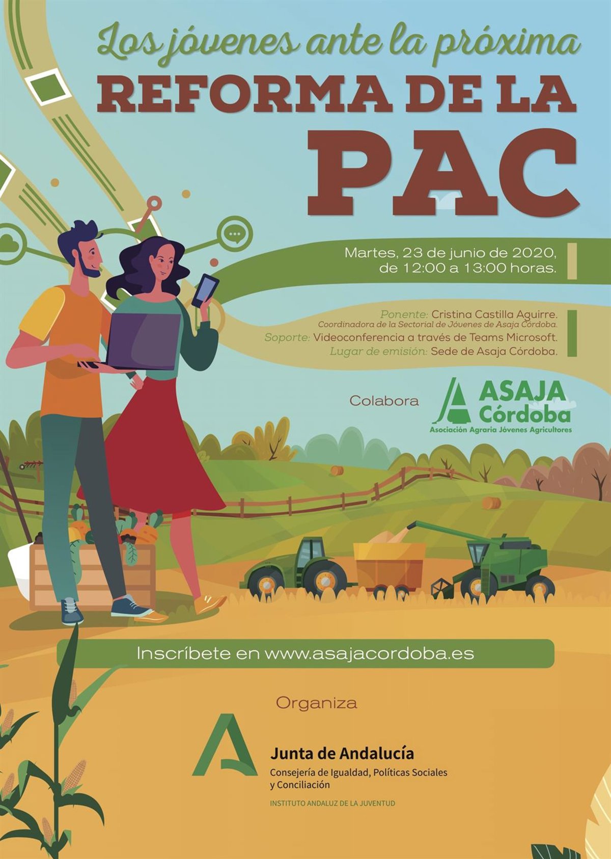 El Instituto Andaluz de la Juventud (IAJ) de Córdoba organizará el próximo día 23 de junio, en colaboración con Asaja Córdoba, una conferencia sobre la reforma de la Política Agrícola Común (PAC) y la posición de los jóvenes frente a estos cambios.