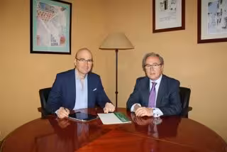 El delegado territorial de Economía Innovación, Ciencia y Empleo de la Junta en Córdoba, Manuel Carmona, se ha reunido este viernes con el presidente de la Confederación de Empresarios de Córdoba (CECO), Antonio Díaz, para la puesta en común de proyectos, dentro de la ronda de encuentros con los principales agentes sociales de la comunidad que el representante empresarial está llevando a cabo desde que tomó posesión de su nuevo cargo.