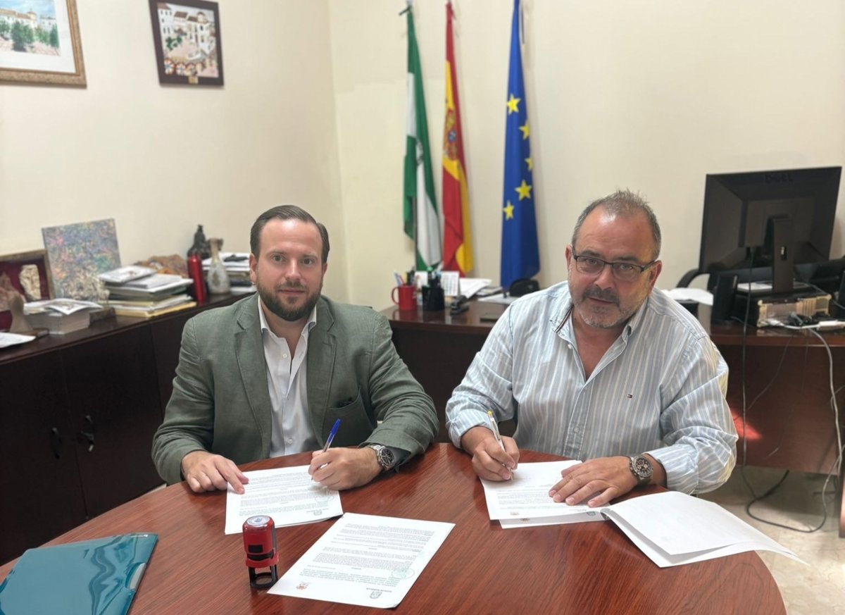 El delegado de Economía, Hacienda y Fondos Europeos, y de Industria, Energía y Minas de la Junta de Andalucía en Córdoba, Agustín López, y el alcalde de Valenzuela (Córdoba), Antonio Pedregosa, han formalizado el acuerdo de cesión gratuita, por la Junta al Ayuntamiento, de dos plantas del edificio situado en la calle Alcázar, 2D del municipio, con destino al hogar del jubilado (planta baja) y sala de usos múltiples (planta segunda).