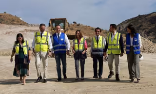 Rocío Díaz (centro), junto al resto de autoridades, durante la visita a las obras de la variante de las Angosturas, en Priego de Córdoba. - JUNTA DE ANDALUCÍA