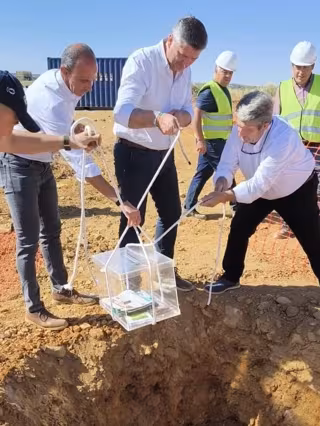 El delegado de Agricultura, Pesca, Agua y Desarrollo Rural de la Junta de Andalucía, Francisco Acosta, ha colocado este martes la primera piedra de la futura Agrupación de Vertidos y Estación Depuradora de Aguas Residuales (EDAR) de Santa Eufemia (Córdoba), un proyecto que permitirá mejorar de forma significativa la calidad de las aguas en este municipio.