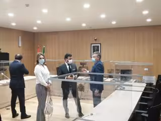 Tras el encuentro, el viceconsejero ha visitado algunas de las salas de la Ciudad de la Justicia que ya disponen de mamparas para la celebración de juicios. En total, se han colocado 45 mamparas en 12 salas diferentes para garantizar en todo momento la protección de los asistentes y participantes en los juicios.