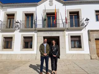 José Luis Cabrera y Raquel López, ante el Ayuntamiento de Alcaracejos. - JUNTA DE ANDALUCÍA