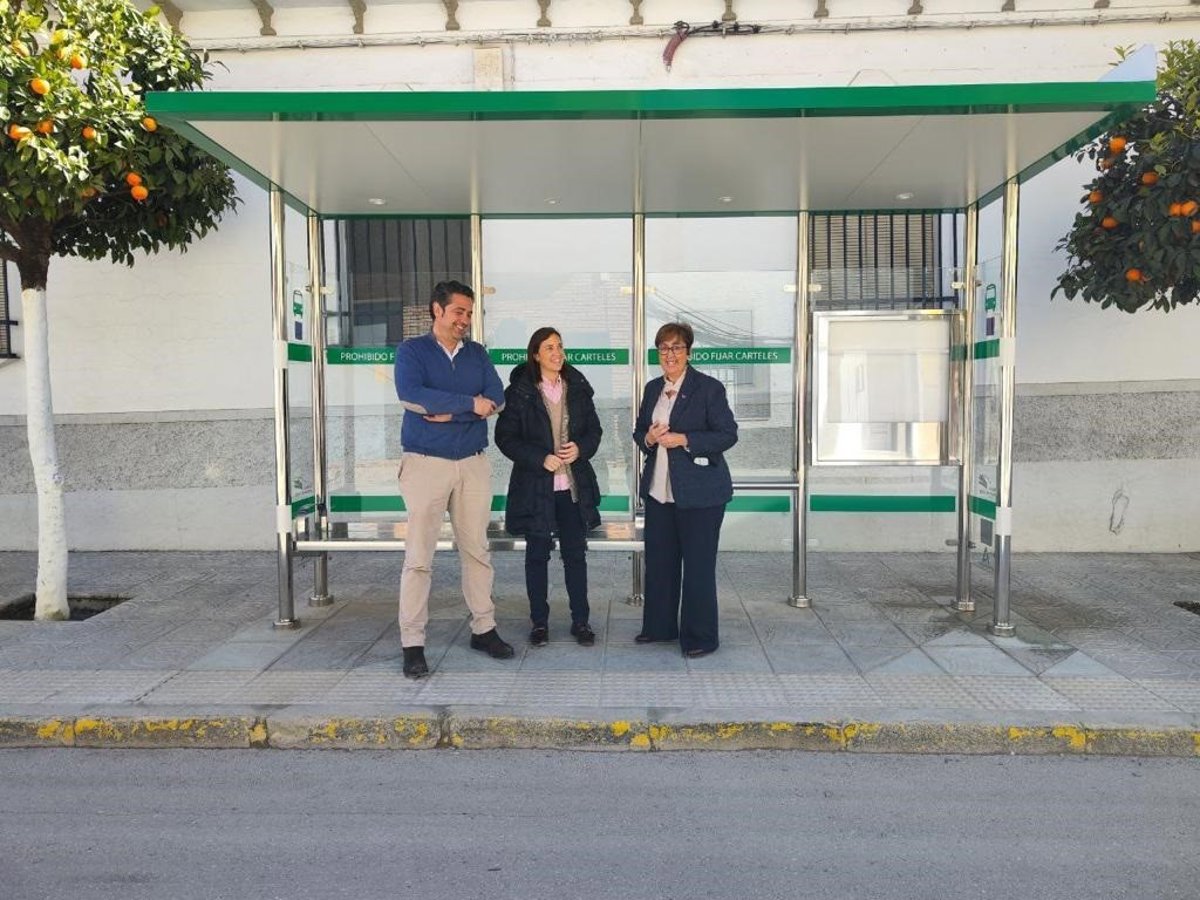 La delegada de Fomento, Articulación del Territorio y Vivienda, Cristina Casanueva (centro), visita la nueva marquesina instalada en Moriles. - JUNTA DE ANDALUCÍA