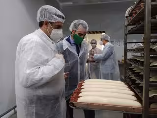 Archivo - El delegado de Empleo, Formación, Trabajo Autónomo, Transformación Económica, Conocimiento, Industria y Universidades de la Junta de Andalucía en Córdoba, Ángel Herrador (centro), visita la panificadora Inpaluc, en una imagen de archivo - JUNTA DE ANDALUCÍA - Archivo