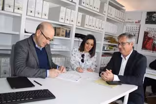 El delegado de Economía, Innovación, Ciencia y Empleo de la Junta de Andalucía en Córdoba, Manuel Carmona, ha firmado la cesión de cuatro alojamientos empresariales para cuatro nuevos emprendedores que se ubicarán en los Centros Andaluces de Emprendimiento (CADE) de Andalucía Emprende en Priego de Córdoba, Cabra y Lucena (2).