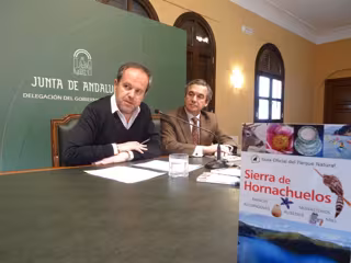 El delegado territorial de Medio Ambiente y Ordenación del Territorio de la Junta de Andalucía en Córdoba, Francisco de Paula Algar, junto al presidente de la Junta Rectora del Parque Natural de la Sierra de Hornachuelos, Alfonso García-Ferrer, ha presentado este lunes la Guía oficial de este Parque Natural, que muestra de forma pormenorizada su patrimonio natural y etnográfico, destacando los valores más sobresalientes del espacio, así como las costumbres, usos y aprovechamientos tradicionales.