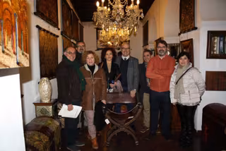El delegado de Economía, Innovación, Ciencia y Empleo de la Junta de Andalucía, Manuel Carmona, ha visitado este lunes el taller artesano Meryan, para conocer el trabajo que allí realizan la tercera generación de una familia especialista en cordobanes y guadamecíes con casi 70 años de historia, acto que ha servido para presentar el I Premio a la Artesanía en Andalucía y fomentar la participación de los artesanos en este galardón.