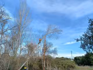 La eliminación de árboles se realiza a través de diferentes técnicas. Desde el suelo, mediante una poda secuenciada, garantizando en todo momento su caída con poleas o cuerdas para evitar posibles daños a tendidos eléctricos o infraestructuras aledañas. Igualmente se han realizado podas en altura con cables cabestrantes para evitar el riesgo de caídas. En ambos casos, bajo estrictas medidas de seguridad para los trabajadores.