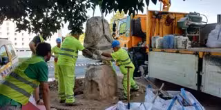 La Junta de Andalucía está llevando a cabo este miércoles la reposición en la capital cordobesa del monolito que sostendrá el nuevo busto, en homenaje al matador de toros Rafael Guerra 'Guerrita', que sustituirá al que fue robado de un almacén municipal, tras su retirada con motivo de unas obras para dotar de carril bici a Molinos Alta.