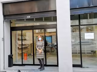La delegada territorial de Salud y Familias, María Jesús Botella, en la puerta de acceso al registro por la Calle Miguel Benzo. - JUNTA DE ANDALUCÍA