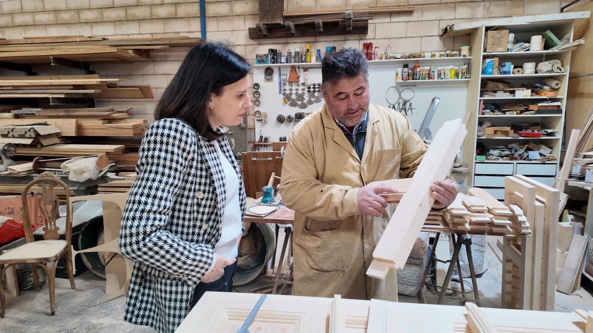 La delegada de Empleo, Empresa y Trabajo Autónomo de la Junta en Córdoba, María Dolores Gálvez, ha visitado en Santa Eufemia el taller del artesano Santiago Valverde, ebanista y tornero que ha sido beneficiario de la última convocatoria de ayudas puestas en marcha por el Gobierno andaluz dirigidas a fomentar la competitividad de las pymes artesanas. La subvención concedida ha sido de casi 11.000 euros, que Valverde destinará a nueva maquinaria.
