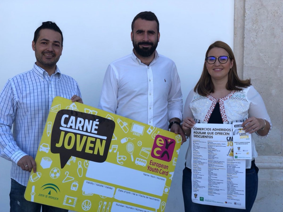 El coordinador provincial del Instituto Andaluz de la Juventud (IAJ) en Córdoba, Alberto Mayoral, ha mantenido este jueves un encuentro con jóvenes de Aguilar de la Frontera, junto a la concejal de Juventud del municipio, Macarena Jiménez, y el concejal de Ferias y Festejos, Rafael García, para presentarles la campaña Carné Joven, puesta en marcha por el IAJ en colaboración con el consistorio aguilarense y de la que se podrán beneficiar más de 1.300 jóvenes.