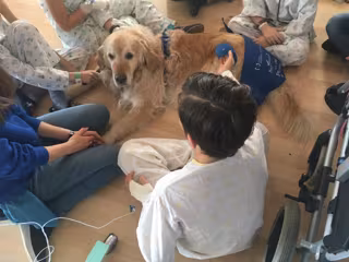 Los niños disfrutan de una sesión de terapia canina en el Hospital Reina Sofía. - HOSPITAL REINA SOFÍA