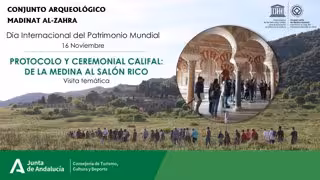 El Conjunto Arqueológico de Medina Azahara se ha sumado en Córdoba a la celebración del Día Internacional del Patrimonio Mundial, el próximo 16 de noviembre, con la actividad 'Protocolo y ceremonial califal: de la Medina al Salón Rico', que incluye un paseo por la antigua ciudadela califal que guarda en su subsuelo, sin transformaciones posteriores, los restos de una completa urbe del siglo X, entre los que destacan sus calles, la trama urbana y varios edificios singulares.