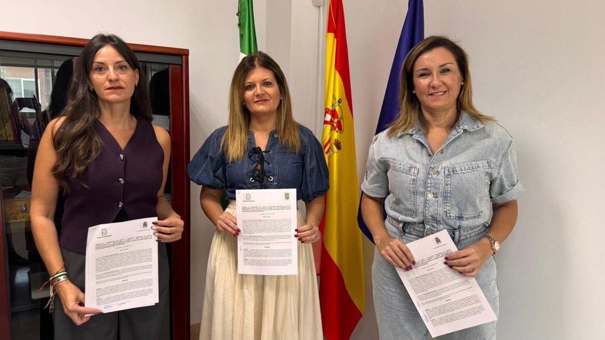 Raquel López (dcha.), tras la firma de los acuerdos con Ana María Sánchez (izda.), y Vanessa Martín (centro). - JUNTA DE ANDALUCÍA