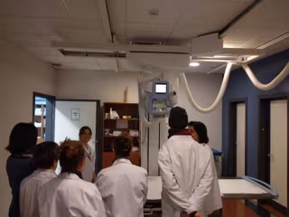 Posteriormente, se les ha acompañado, en primer lugar, al área de Laboratorio, donde se ha simulado una analítica en la sala de extracciones y, más tarde, han pasado por la sala de Radiología. En ella, la coordinadora de Radiodiagnóstico les ha realizado otra simulación de una prueba de rayos X, además de explicarles el área, para que pierdan el miedo tanto al aparataje como al personal que les atiende.