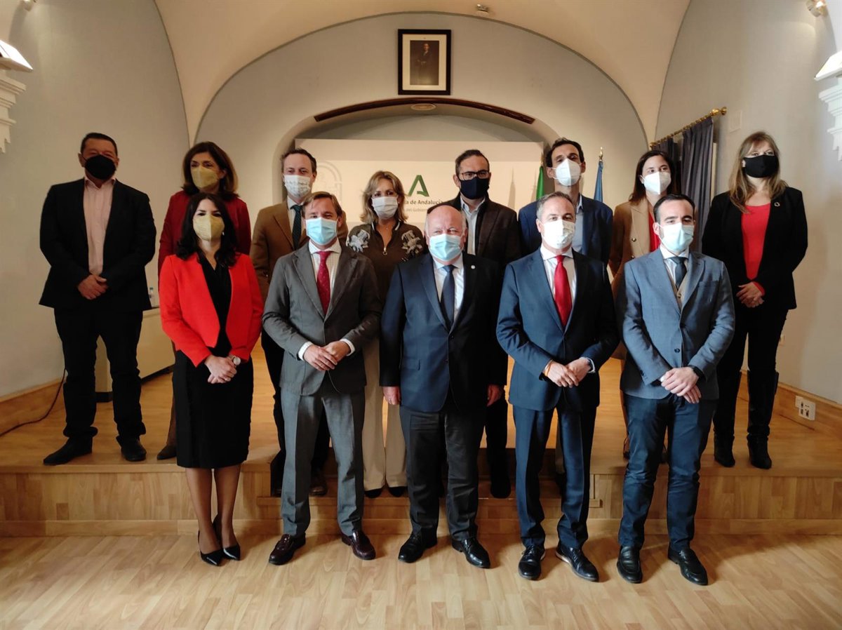 Aguirre (centro), con el resto de delegados de la Junta en Córdoba, en la presentación del prespuesto andaluz para 2022 referido a la provincia. - EUROPA PRESS