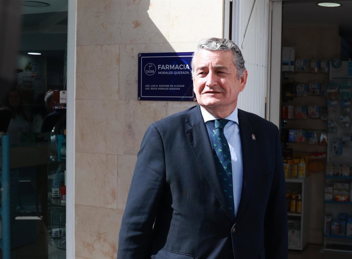 Antonio Sanz, ante una de las farmacias de Cabra (Córdoba) donde se ha llevado a cabo la experiencia piloto para mejorar la dispensación de tratamientos crónicos. - ROCÍO RUZ-EUROPA PRESS