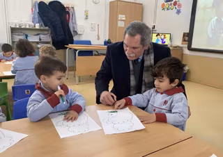 El delegado territorial de Desarrollo Educativo y Formación Profesional y de Universidad, Investigación e Innovación de la Junta, José Francisco Viso Sánchez, con alumnos de Infantil. - JUNTA DE ANDALUCÍA