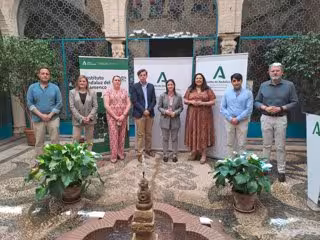 El director del Instituto Andaluz del Flamenco, Cristóbal Ortega, junto a la delegada de Cultura y Patrimonio Histórico de la Junta en Córdoba, Cristina Casanueva, han asistido a la presentación de la programación de Flamenco Viene del Sur, en el que participan ocho municipios cordobeses: Baena, Lucena, Priego de Córdoba, Puente Genil, Montoro, La Rambla, Villanueva de Córdoba y Bujalance.