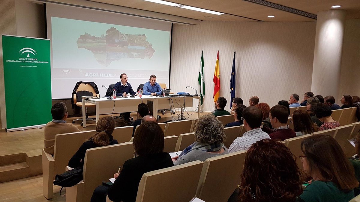 El delegado territorial de Agricultura de la Junta en Granada, Manuel García Cerezo, ha participado en la inauguración de una jornada informativa donde se ha dado a conocer el proyecto denominado AGRI-HEBE 2020, en cuya puesta en marcha colaborarán las Oficinas Comarcales Agrarias, la Fundación Andalucía Emprende, el Instituto de Investigación y Formación Agraria y Pesquera, y organizaciones agrarias y cooperativas de Granada y Almería.