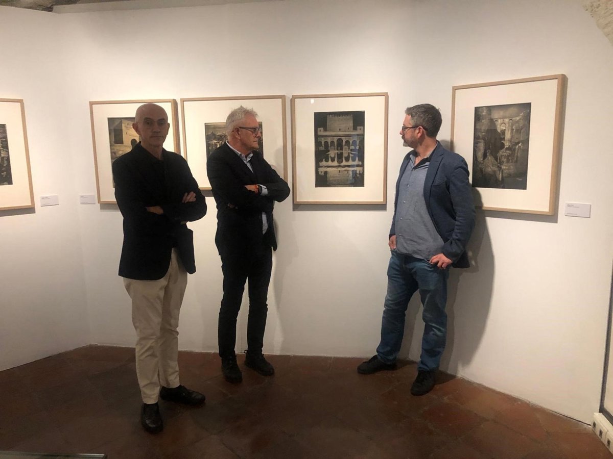 Al acto de presentación han asistido el director del espacio museístico, Emilio Escoriza, y los representantes de la institución navarra y comisarios de la muestra Ignacio Miguéliz y Valentín Vallhonrat.