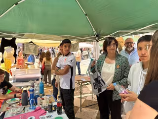 La delegada de Desarrollo Educativo y Formación Profesional de la Junta en Granada, María José Martín, ha visitado la Feria 'Segundas Oportunidades' organizada por la Escuela de Arte de Guadix, donde un centenar de estudiantes han participado en los talleres de reciclaje y en la exposición de trabajos elaborados con materiales reciclados.